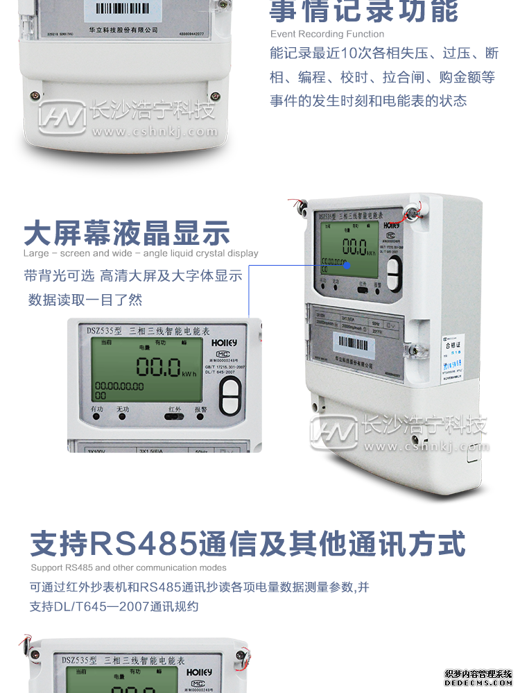 - 主要功能:有功,功率因素,有功功率,無功功能,視在功率,四象限無功,電壓,電流,事件報警,需量
