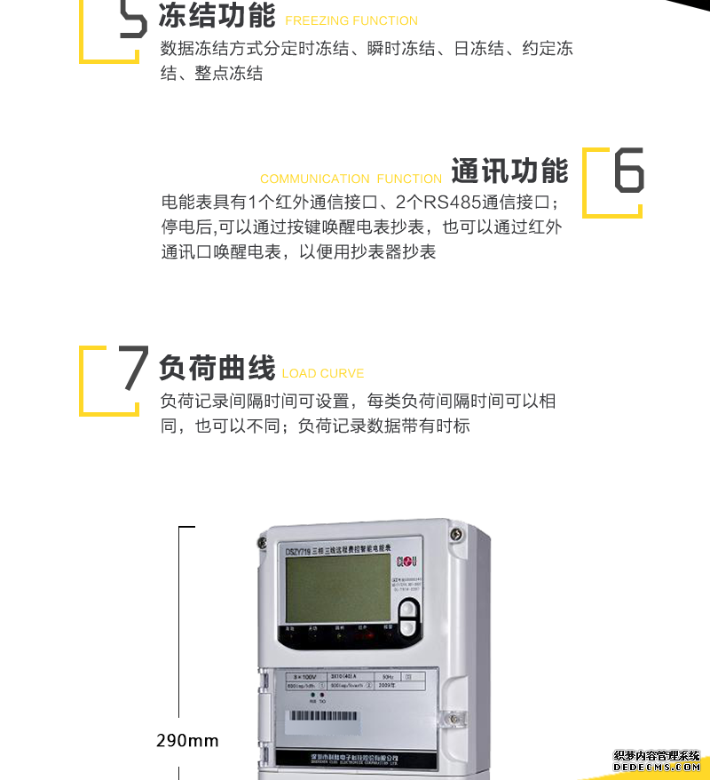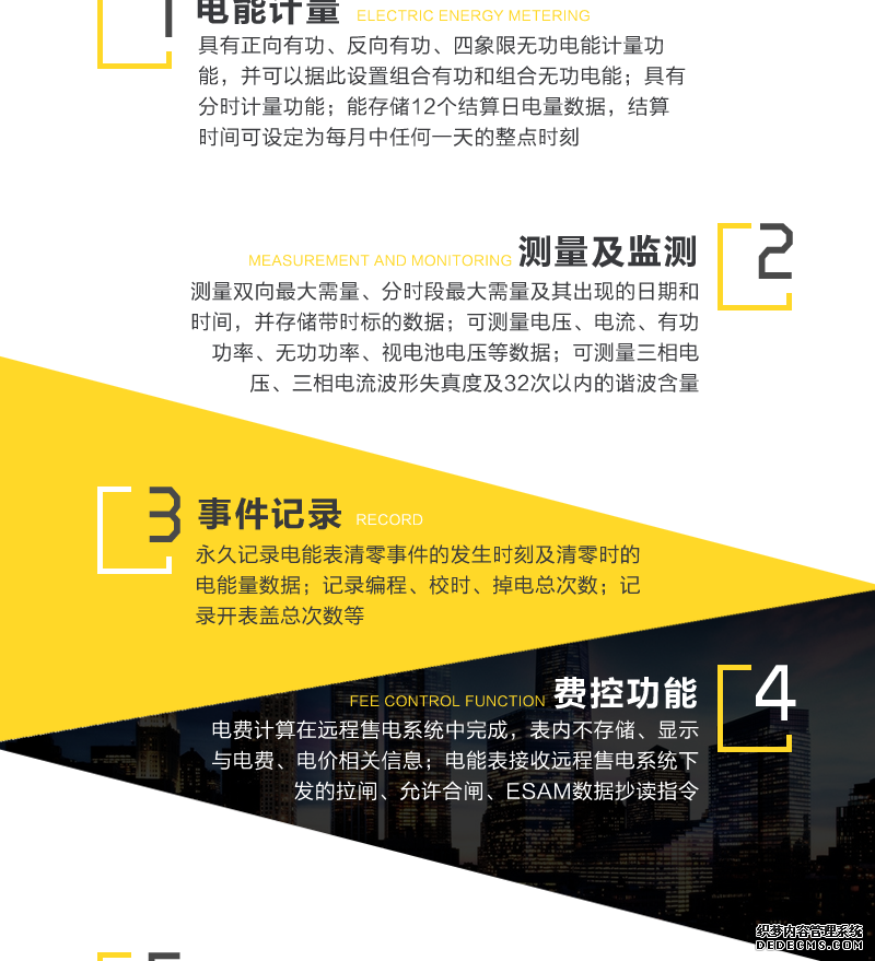 - 主要功能:有功,功率因素,有功功率,無功功能,四象限無功,電壓,電流,事件報警,費控,需量