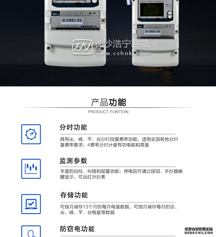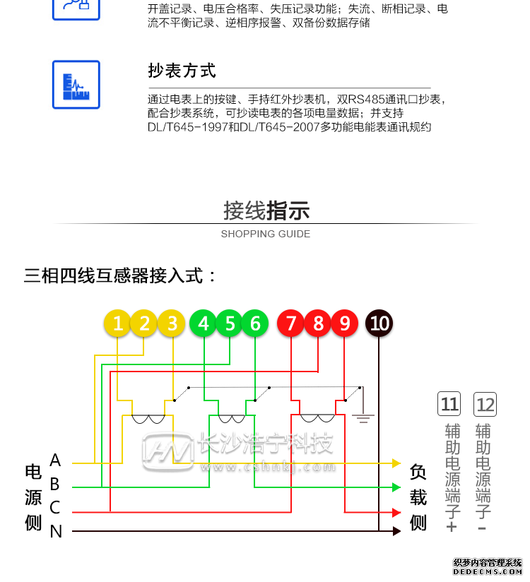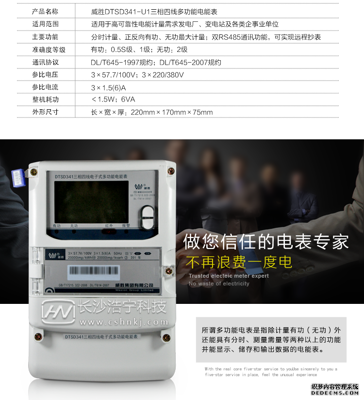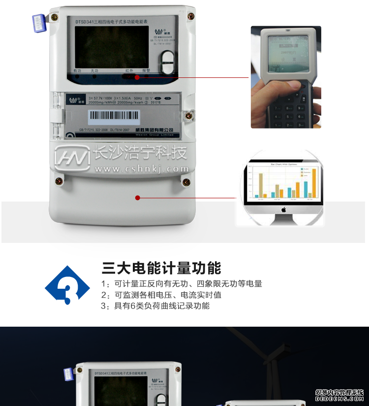 - 主要功能:有功,功率因素,有功功率,無功功能,四象限無功,電壓,電流,事件報警,需量