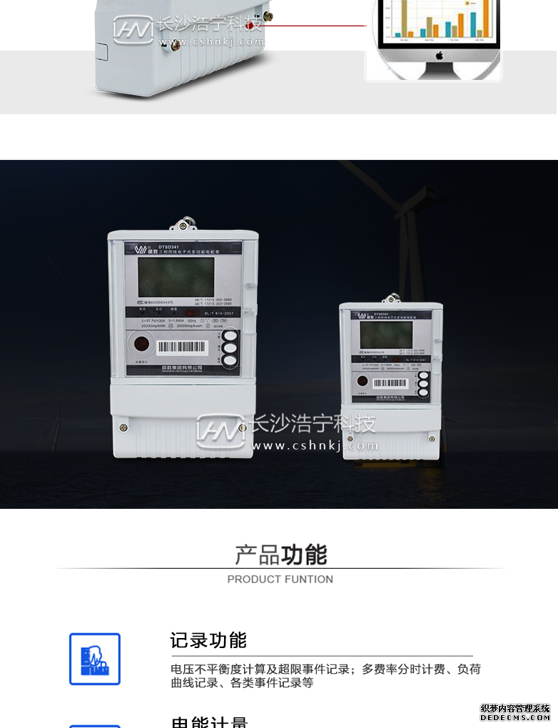 - 主要功能:有功,功率因素,有功功率,無功功能,視在功率,四象限無功,電壓,電流,事件報警,諧波