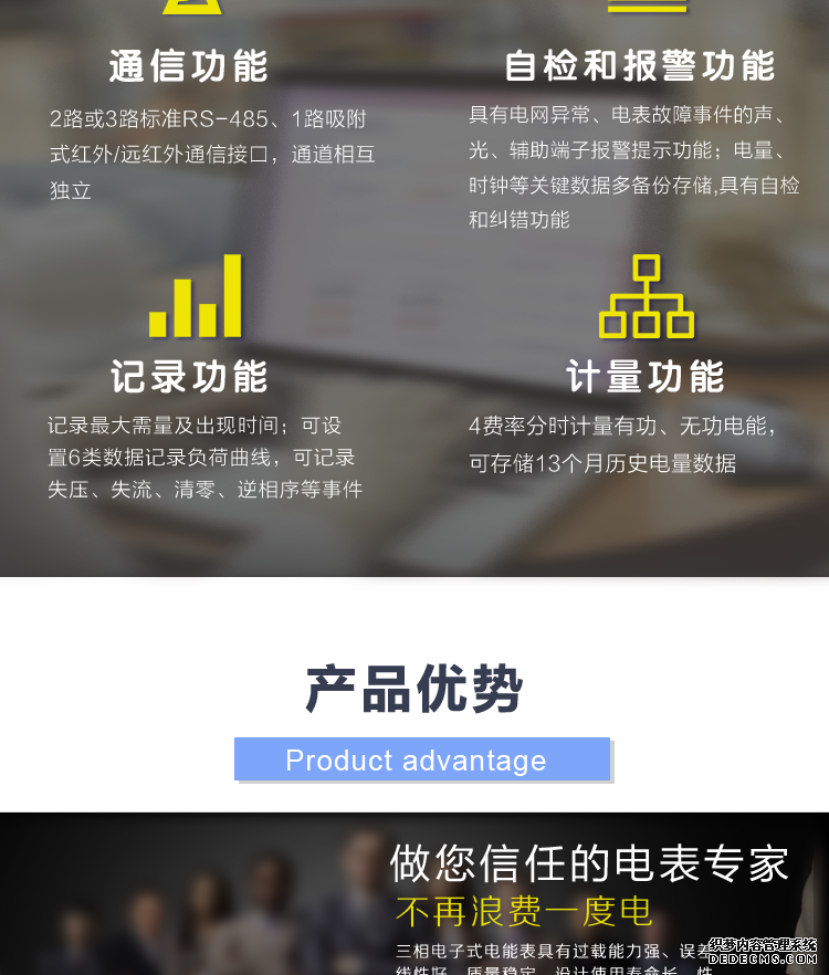 - 主要功能:有功,功率因素,有功功率,無功功能,視在功率,四象限無功,電壓,電流,事件報警,需量