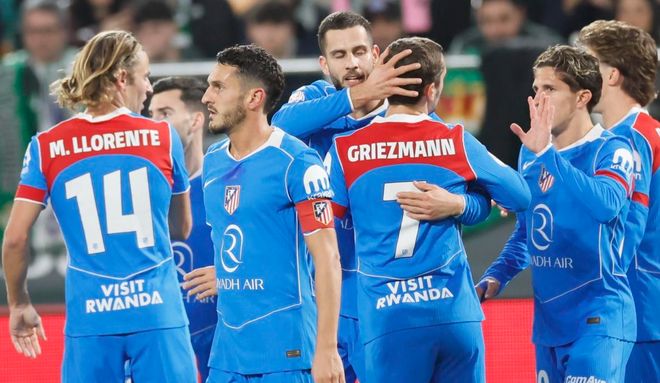 下半場易邊再戰(zhàn),皇家貝蒂斯進行大規(guī)模換人調整,奧爾蒂斯、德索薩和菲達爾戈替補上場,路易斯-阿維拉、巴爾特拉和德奧薩被換下。馬競在第50分鐘被動換人,巴里奧斯受傷下場,希門尼斯替補上場。3分鐘后,德索薩犯規(guī),被出示黃牌。第62分鐘,馬競再次進球。格列茲曼在禁區(qū)左側小角度爆射破門!